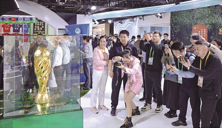 The China International Import Expo (CIIE) opened grandly in Shanghai on Nov 5, featuring the championship trophy won by Taizhou in the Jiangsu Football City League. The trophy was prominently displayed in the Jiangsu Cultural Exchange Exhibition Area, marking it as one of the event's key highlights.