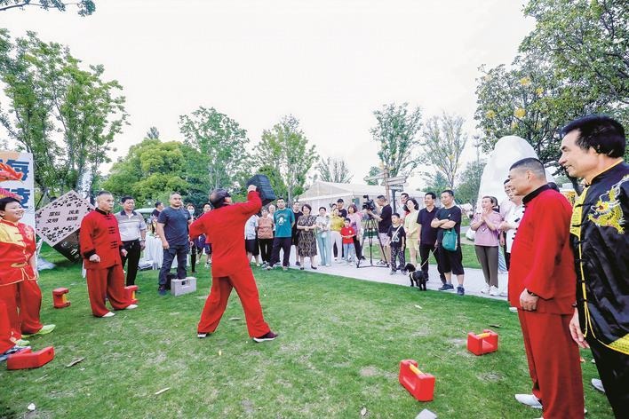 Visitors watch a martial arts performance. [Photo/Taizhou Daily]