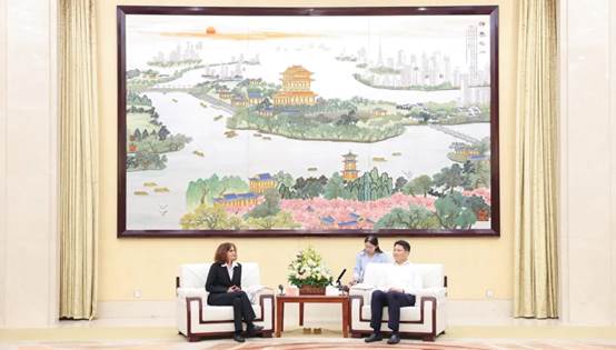 Jiang Dongdong, Party secretary of Taizhou, meets with Anna Mohl, CEO of Nestle Health Science. [Photo/WeChat account: tzfabu]