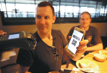 A foreign resident uses a mobile payment app at a restaurant in Hangzhou, Zhejiang province. CHINA DAILY
