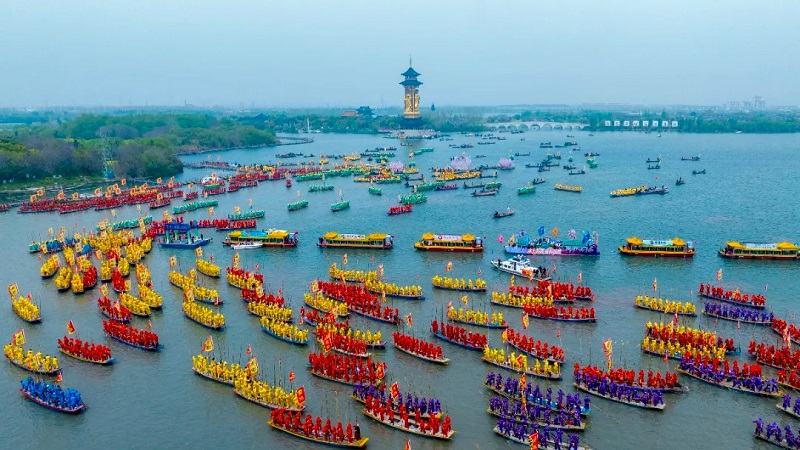 The 2026 Qintong Boat Festival kicked off in grand style on April 6 at Qinhu National Wetland Park in Jiangyan district, Taiz...